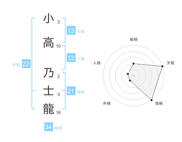 小高 乃士龍さんの総格は34画の2点!