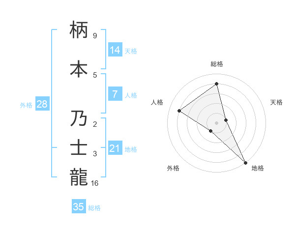 柄本 乃士龍さんの地格は21画の5点!