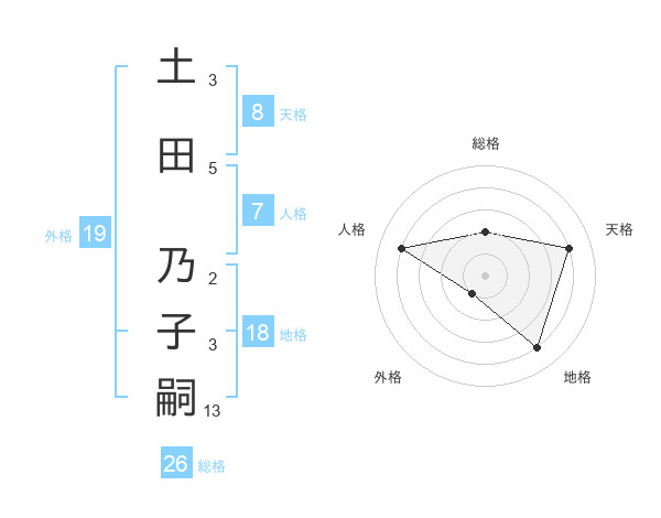 土田 乃子嗣さんを姓名の画数から五運を鑑定