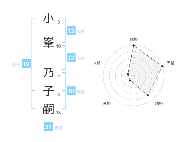 小峯 乃子嗣さんの総格は31画の5点!