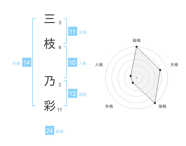 三枝 乃彩さんを姓名の画数から五運を鑑定