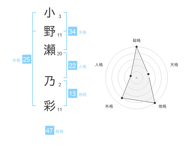 小野瀬 乃彩さんを姓名の画数から五運を鑑定