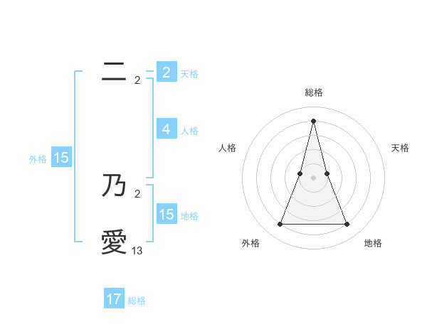 二 乃愛さんの外格は15画の4点!