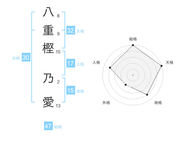 八重樫 乃愛さんを姓名の画数から五運を鑑定