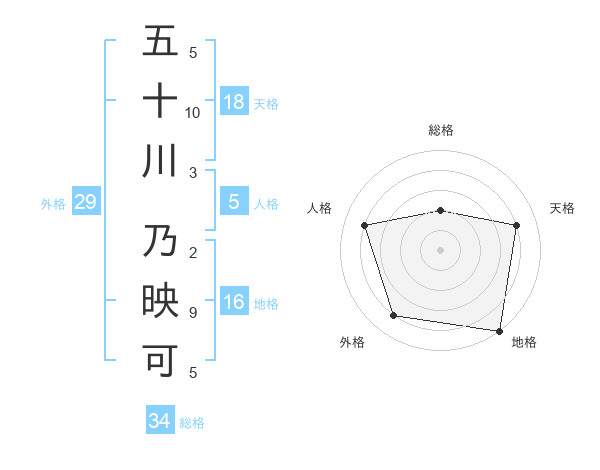 五十川 乃映可さんを姓名の画数から五運を鑑定
