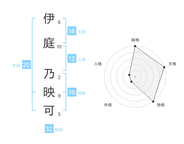 伊庭 乃映可さんを姓名の画数から五運を鑑定