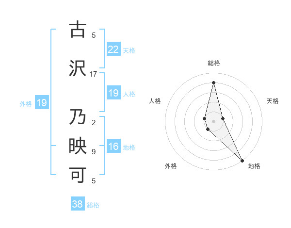 古沢 乃映可さんを姓名の画数から五運を鑑定