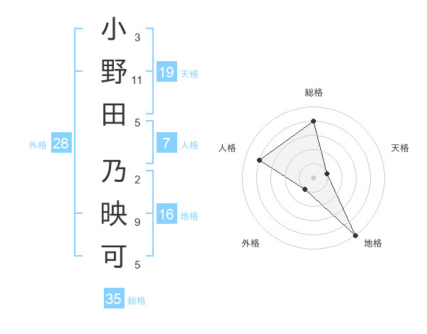 小野田 乃映可さんを姓名の画数から五運を鑑定