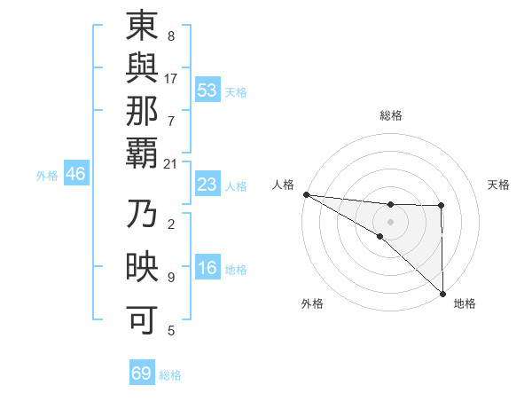 東與那覇 乃映可さんを姓名の画数から五運を鑑定