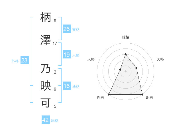 柄澤 乃映可さんの総格は42画の3点!