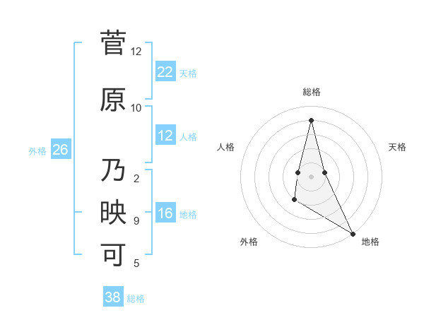菅原 乃映可さんの総格は38画の4点!