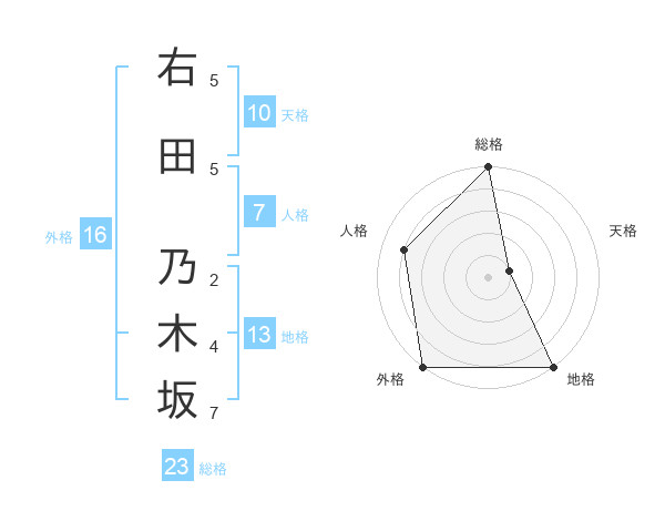 右田 乃木坂さんの総格は23画の5点!