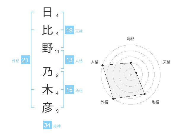 日比野 乃木彦さんを姓名の画数から五運を鑑定