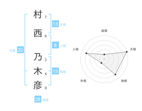 村西 乃木彦さんの天格は13画の5点!
