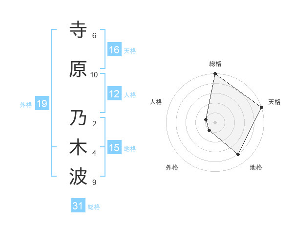 寺原 乃木波さんを姓名の画数から五運を鑑定