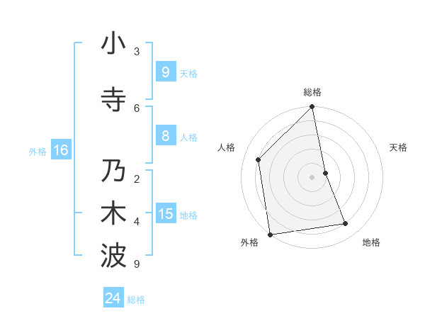 小寺 乃木波さんを姓名の画数から五運を鑑定