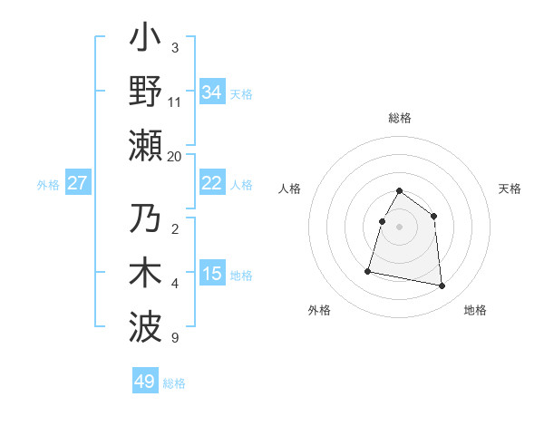 小野瀬 乃木波さんを姓名の画数から五運を鑑定