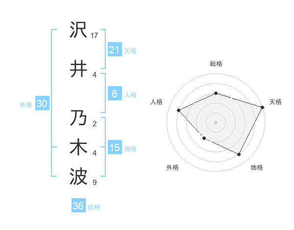 沢井 乃木波さんを姓名の画数から五運を鑑定