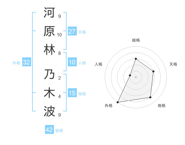 河原林 乃木波さんを姓名の画数から五運を鑑定