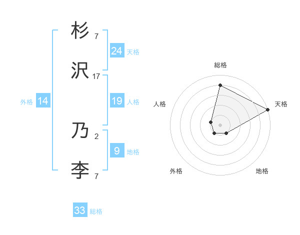 杉沢 乃李さんを姓名の画数から五運を鑑定