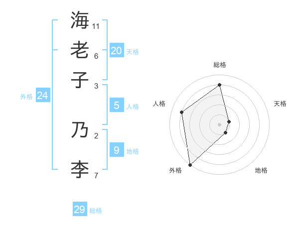 海老子 乃李さんを姓名の画数から五運を鑑定