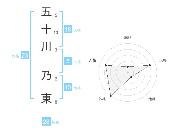 五十川 乃東さんを姓名の画数から五運を鑑定
