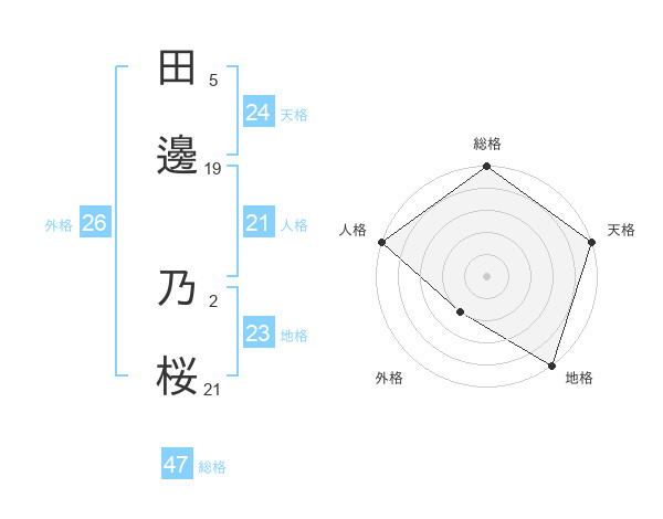 田邊 乃桜さんを姓名の画数から五運を鑑定
