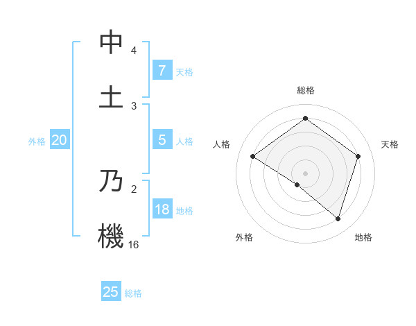 中土 乃機さんの総格は25画の4点!