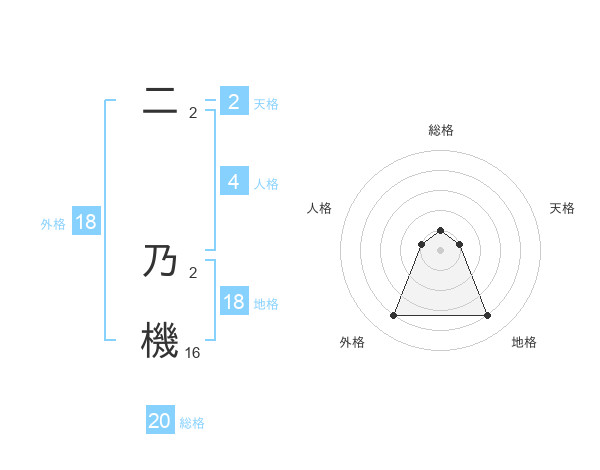 二 乃機さんの外格は18画の4点!