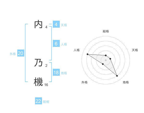 内 乃機さんの総格は22画の1点!