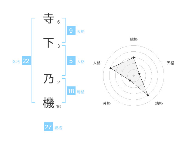 寺下 乃機さんの総格は27画の3点!