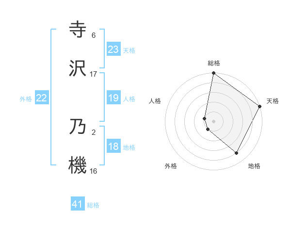 寺沢 乃機さんの天格は23画の5点!