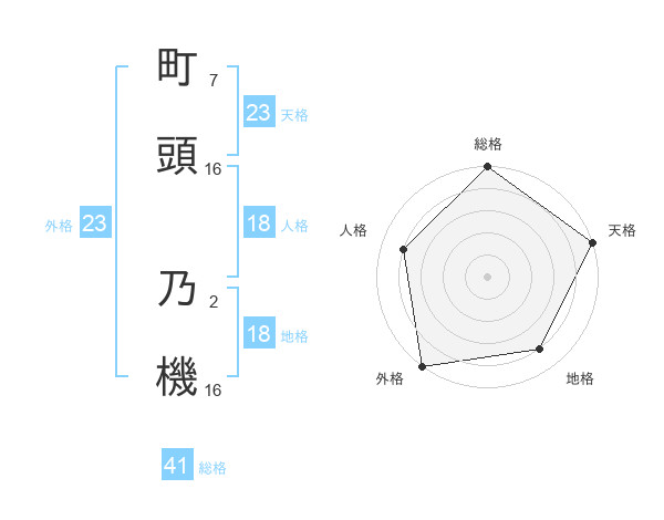 町頭 乃機さんの総格は41画の5点!