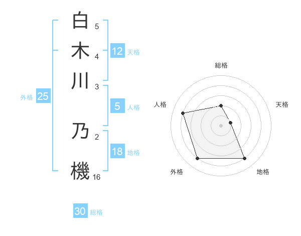 白木川 乃機さんを姓名の画数から五運を鑑定