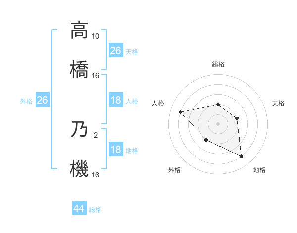 高橋 乃機さんの総格は44画の2点!