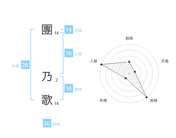 團 乃歌さんの総格は30画の2点!