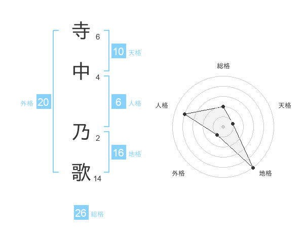 寺中 乃歌さんの総格は26画の2点!