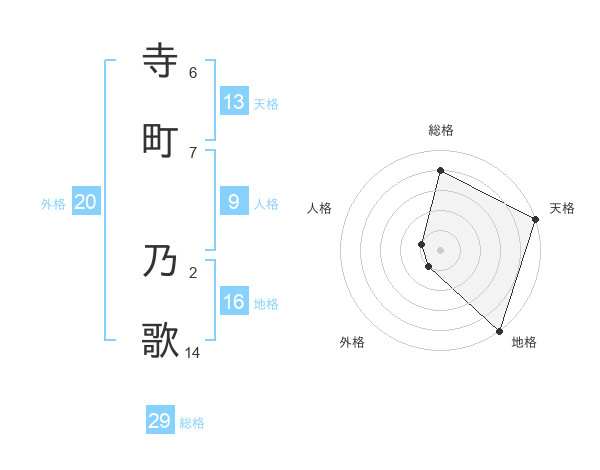 寺町 乃歌さんの総格は29画の4点!