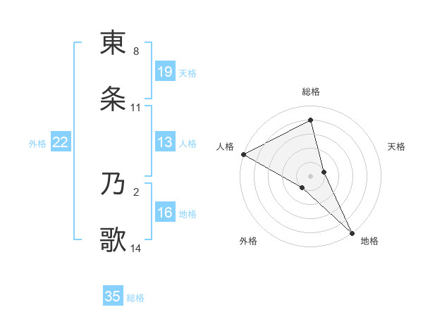 東条 乃歌さんの外格は22画の1点!