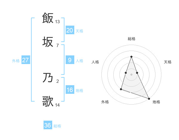 飯坂 乃歌さんを姓名の画数から五運を鑑定
