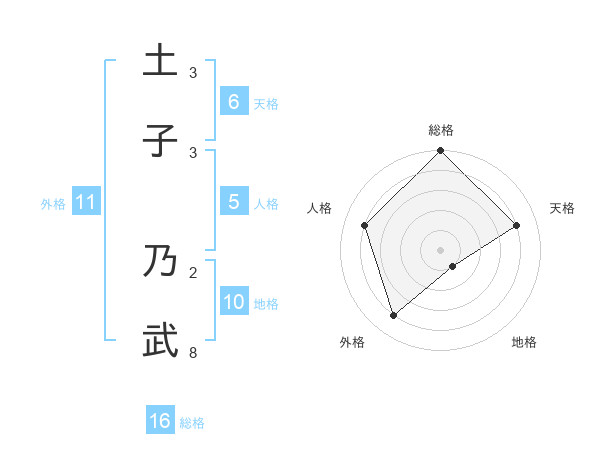 土子 乃武さんの総格は16画の5点!