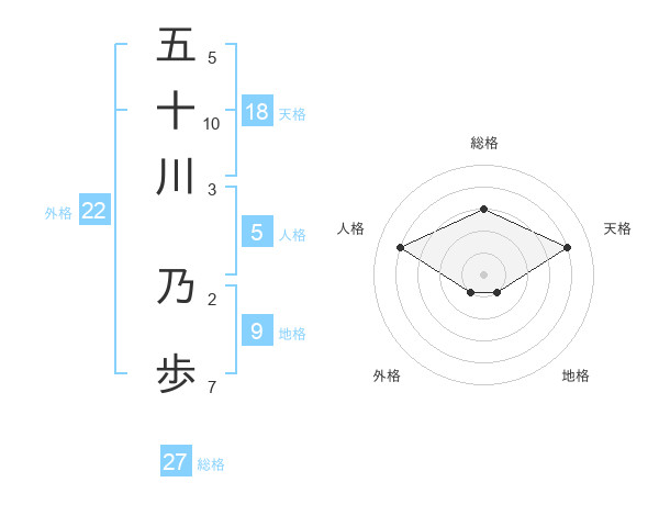 五十川 乃歩さんを姓名の画数から五運を鑑定