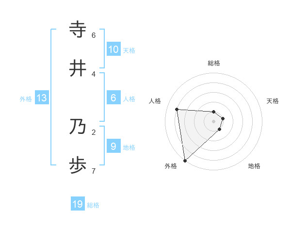 寺井 乃歩さんを姓名の画数から五運を鑑定