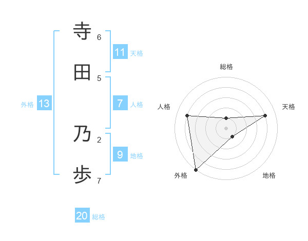 寺田 乃歩さんの外格は13画の5点!