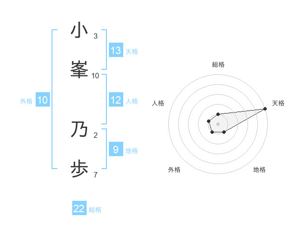 小峯 乃歩さんを姓名の画数から五運を鑑定