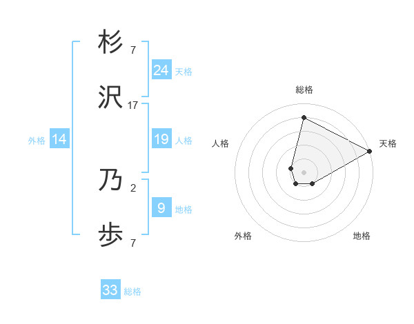 杉沢 乃歩さんを姓名の画数から五運を鑑定