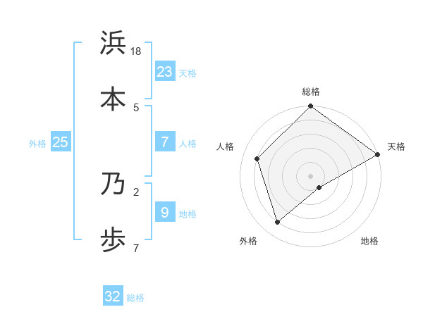 浜本 乃歩さんを姓名の画数から五運を鑑定