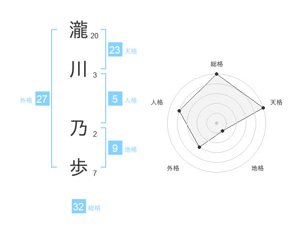 瀧川 乃歩さんを姓名の画数から五運を鑑定