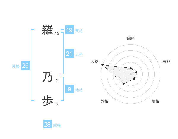 羅 乃歩さんの人格は21画の5点!