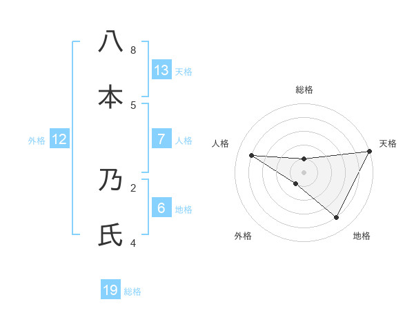 八本 乃氏さんを姓名の画数から五運を鑑定